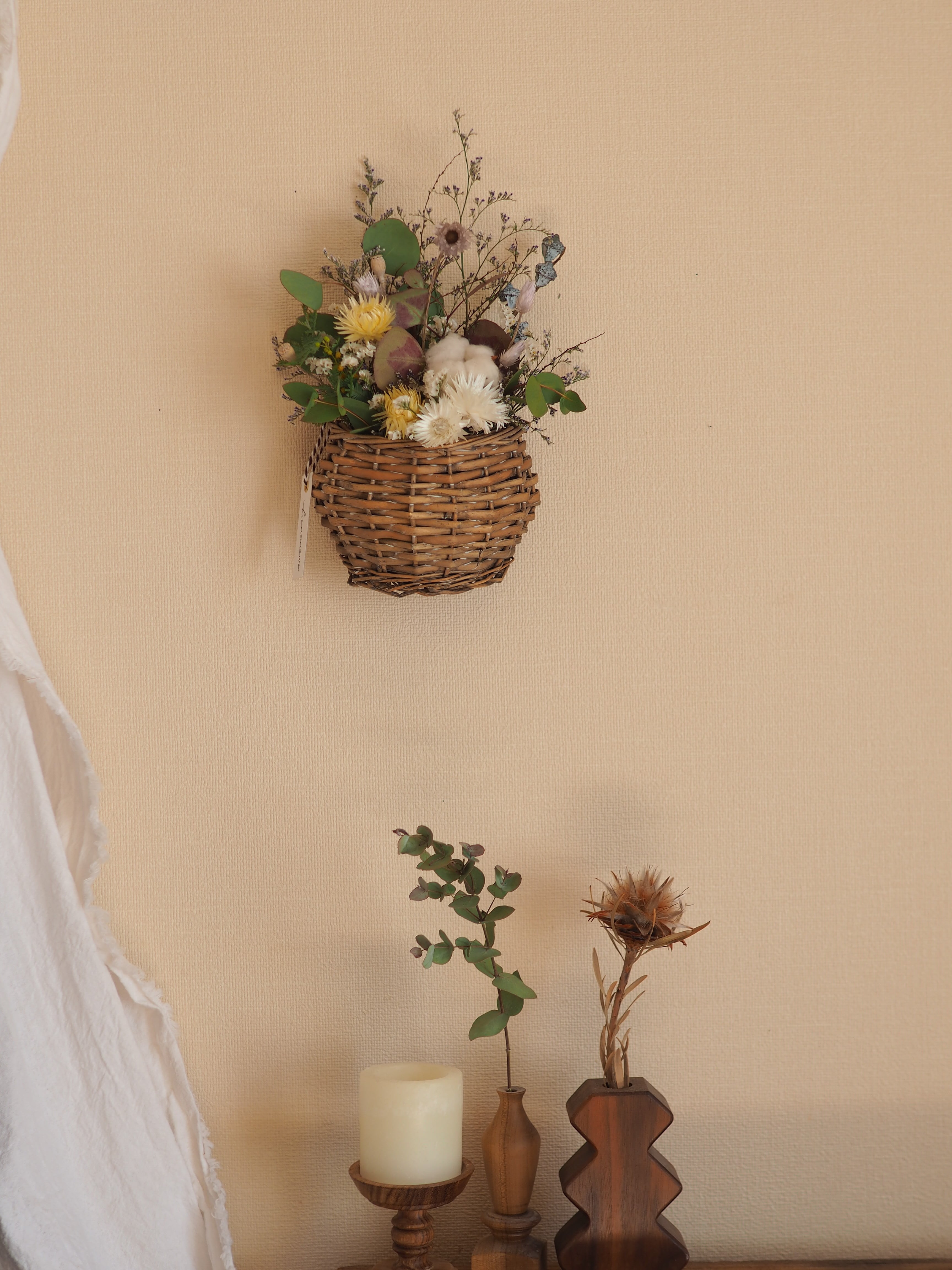 カゴアレンジ、横型アレンジ、ハーフムーンリース、